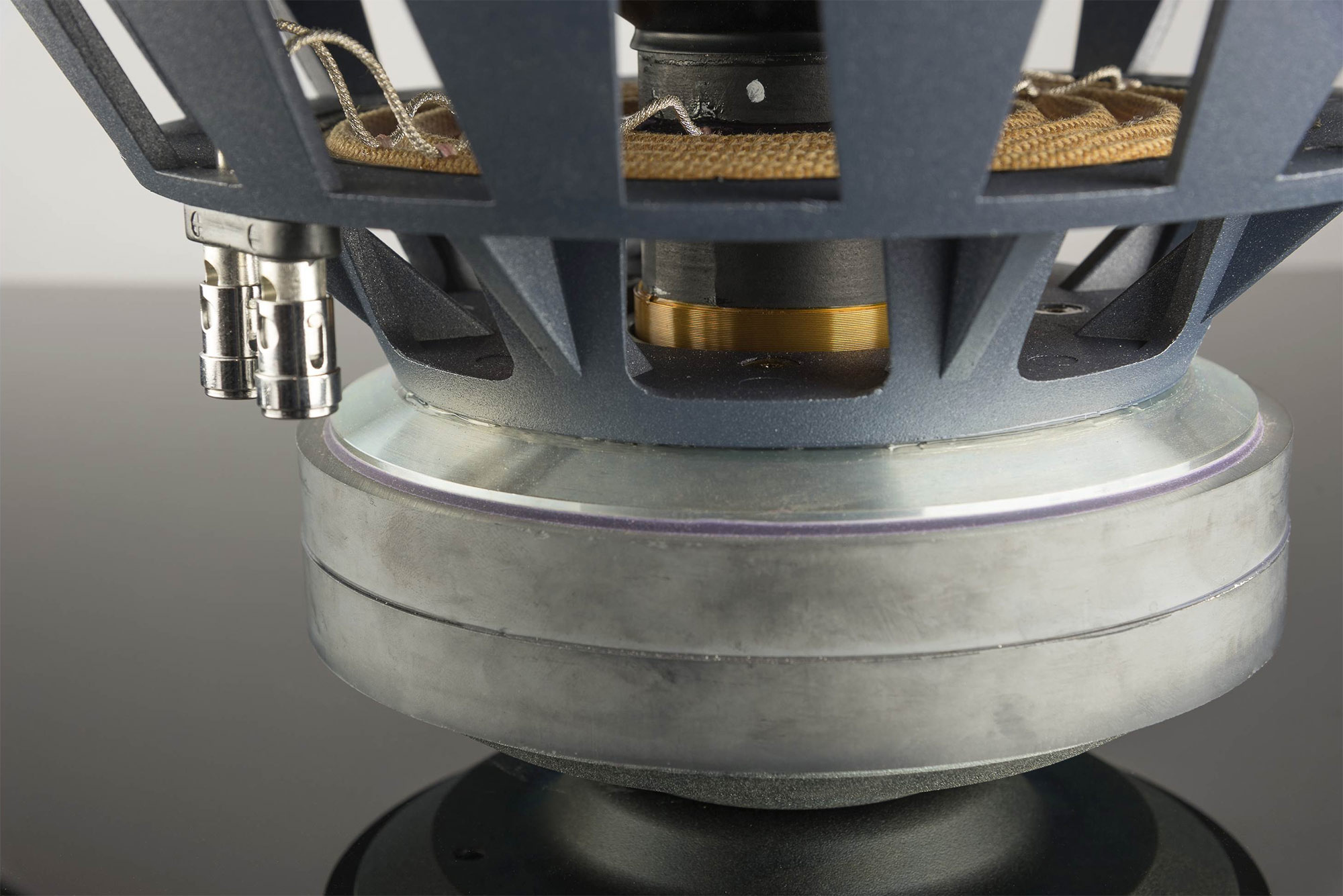 - Звуковая катушка с обмоткой из плоского алюминиевого кабеля с обратной стороны.