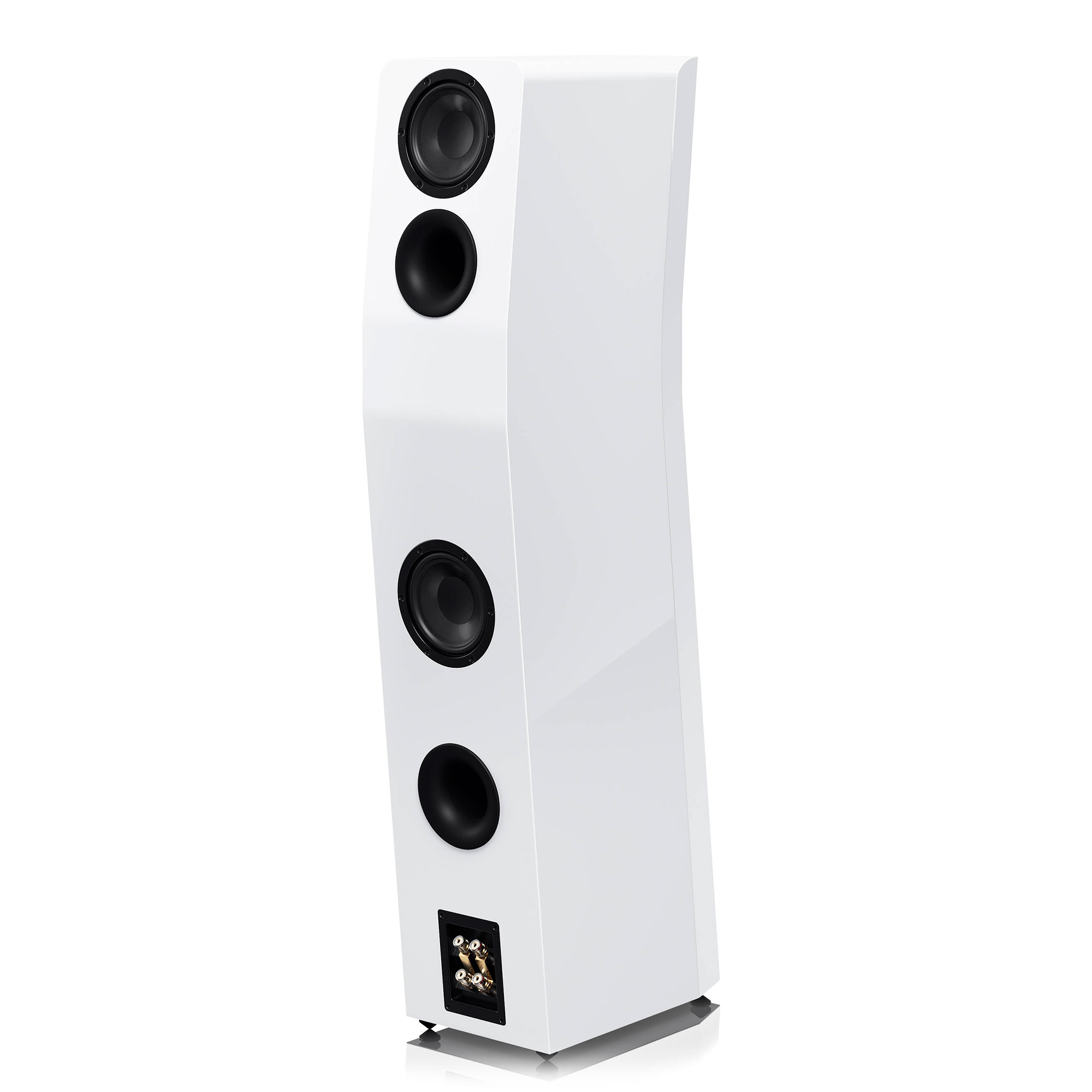 - Скошенная передняя панель и утопленные в корпус динамики уменьшают дифракцию по краям и улучшают высокочастотную характеристику как по оси, так и вне оси.